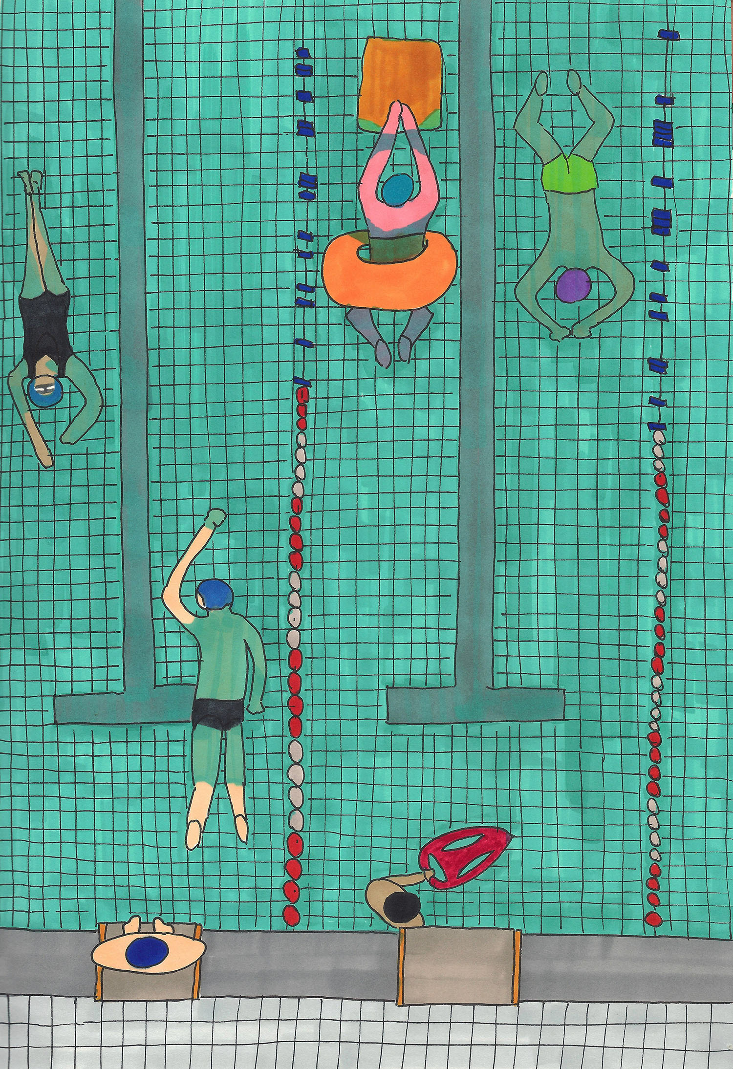 The Swimming Pool 4, A4, 2015, marker on paper, unique